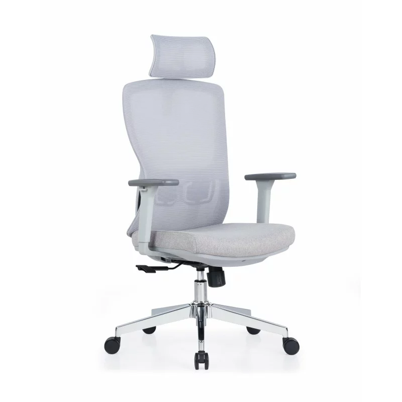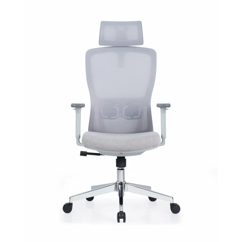 Ergonomischer Bürostuhl Grau – Mesh, verstellbare Lordosenstütze & Kopfstütze, 3D-Armlehnen & Metallbasis – Premiumkomfort