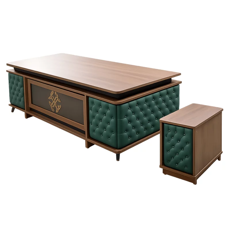 Chefschreibtisch mit Sideboard & Rollcontainer – Modernes Büro-Set 200×95 cm in Grün & Dunkelholz