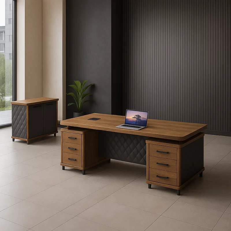 Direktionsschreibtisch 240 cm mit Sideboard – Executive Chefschreibtisch Holz Design mit Stauraum