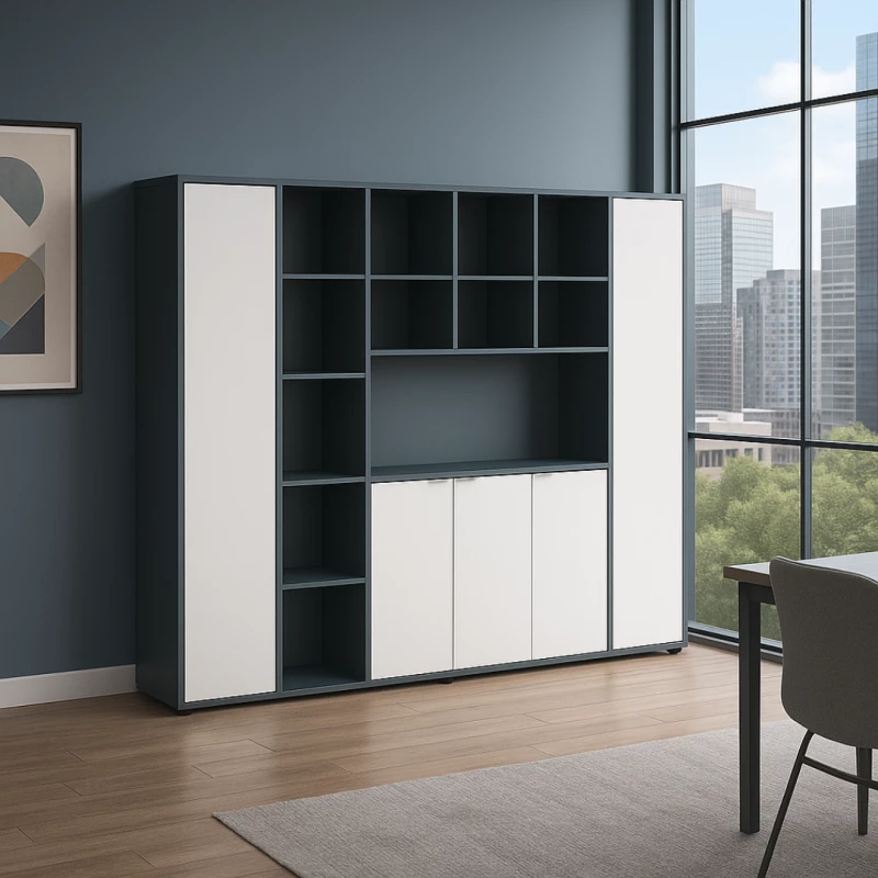 Exklusive Bürobibliothek für das Chefbüro – Modernes & elegantes Design, W2400×T400×H1250 mm, Premium-Oberflächen & PU-Fronten