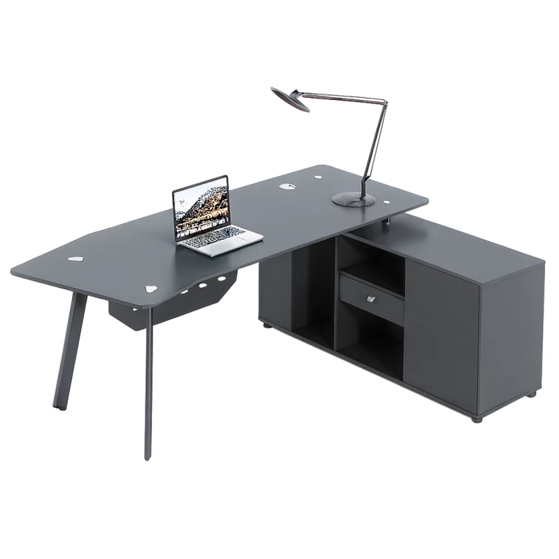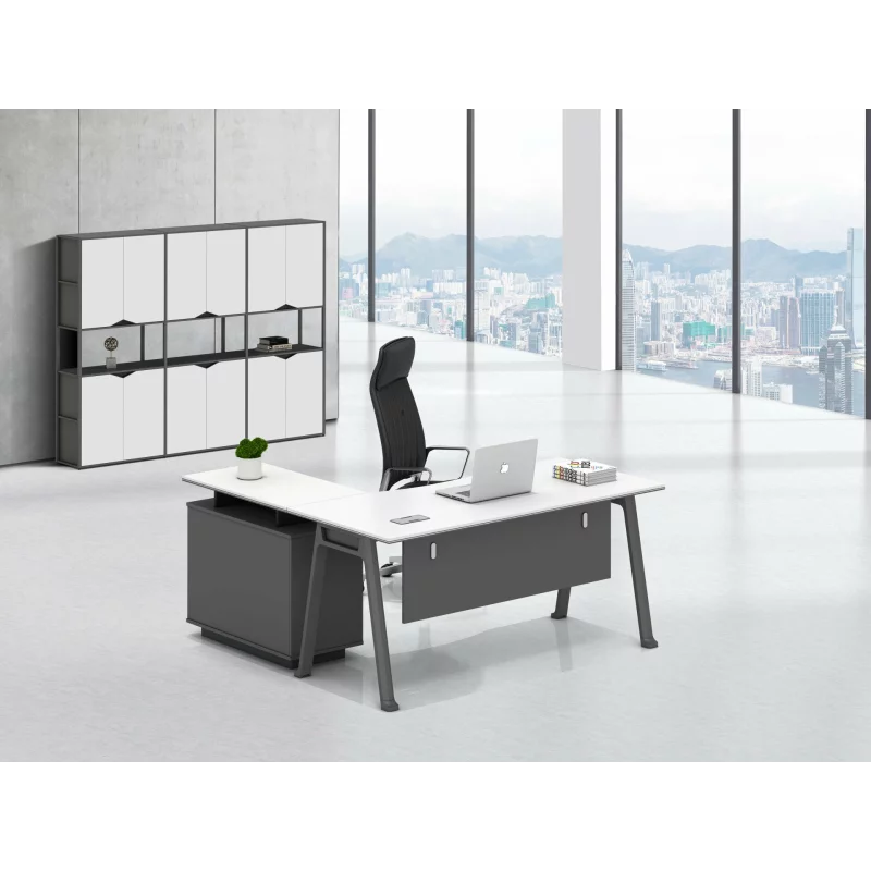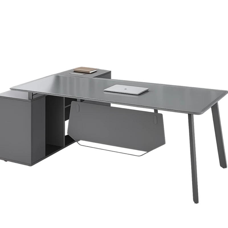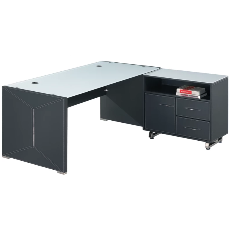 Manager Schreibtisch 1600×800 cm mit 12 mm ESG-Glas & Sideboard – Moderner Executive Bürotisch in Grau