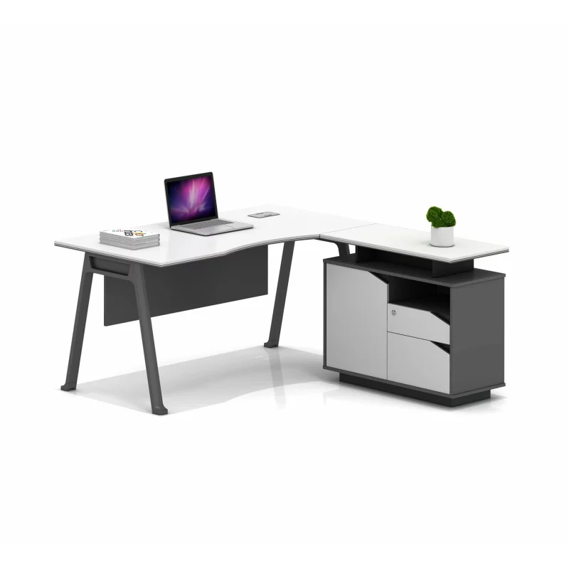 Eckschreibtisch mit Seitenschrank und Metallbeinen – Modernes & elegantes Design – Premiumqualität 1600×800×750 mm (Weiß)