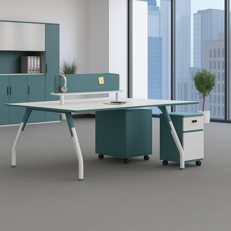 Doppelte Arbeitsstation mit mobilen Schränken – Modernes & elegantes Design – Premiumqualität 1400×1200×750 mm