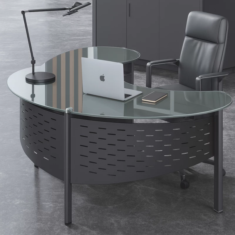 Manager Schreibtisch 2200×1300 mm mit 12 mm Sicherheitsglas & Metallkonstruktion – Executive Design