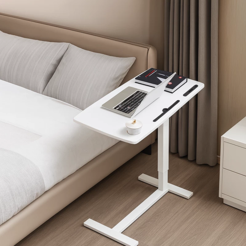Höhenverstellbarer Laptoptisch Weiß mit Getränkehalter & Tablet-Schlitz – 80×40 cm