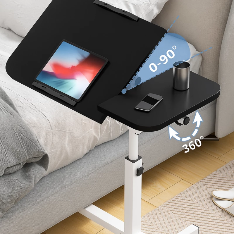 Höhenverstellbarer Laptoptisch Schwarz mit Rollen – 60×40 cm mobiler Beistelltisch