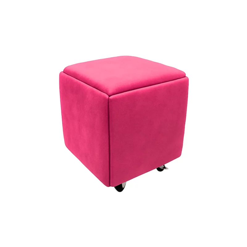 5-in-1 Multifunktionshocker aus Velours Rosa – Moderner Sitzhocker mit Stauraum
