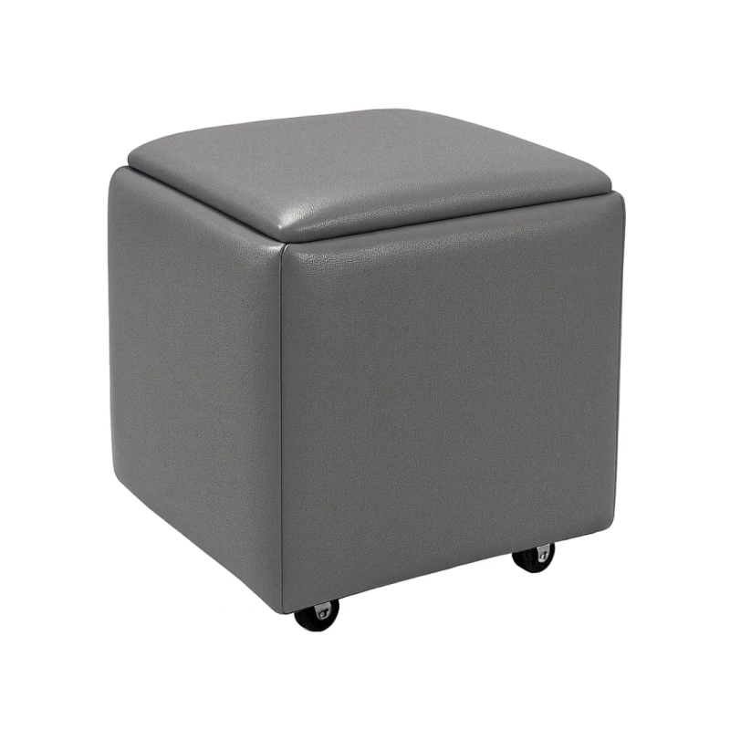 Mehrzweckhocker 5-in-1 aus PU & Latex – Grauer Sitzhocker mit Stauraum S2301