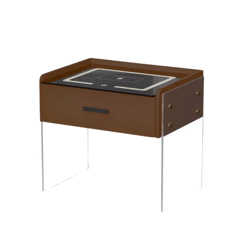 Intelligenter Nachttisch Braun mit kabellosem Laden & LED – Modernes Glas-Holz-Design