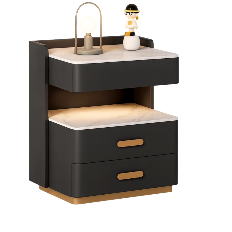 Intelligenter Nachttisch Anthrazitgrau mit Wireless Charging, LED, Bluetooth & Fingerabdruck