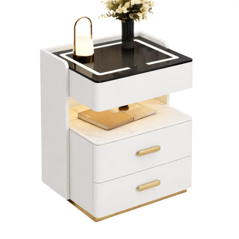 Intelligenter multifunktionaler Nachttisch Smarter Nachttisch Weiß mit kabellosem Laden, Wireless Charging, LED & sicherer Schublade