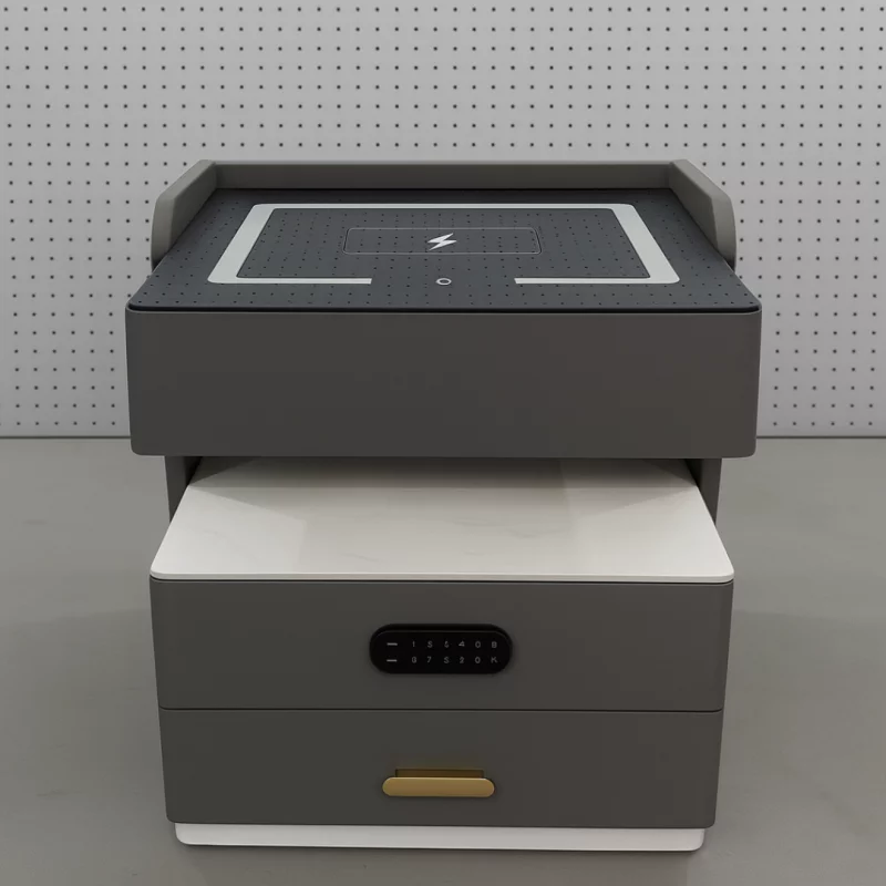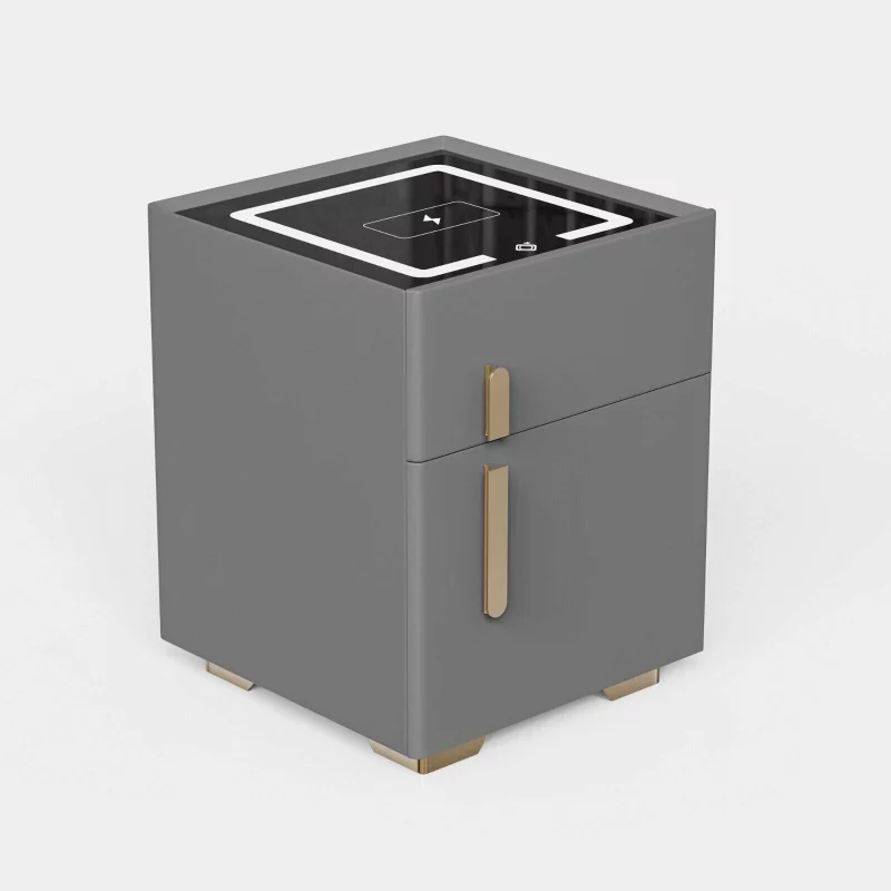 | Funktionen | Kabelloses Aufladen, LED-Beleuchtung, Nachtlichtsensor, Bluetooth-Lautsprecher und biometrische Schlösser; |