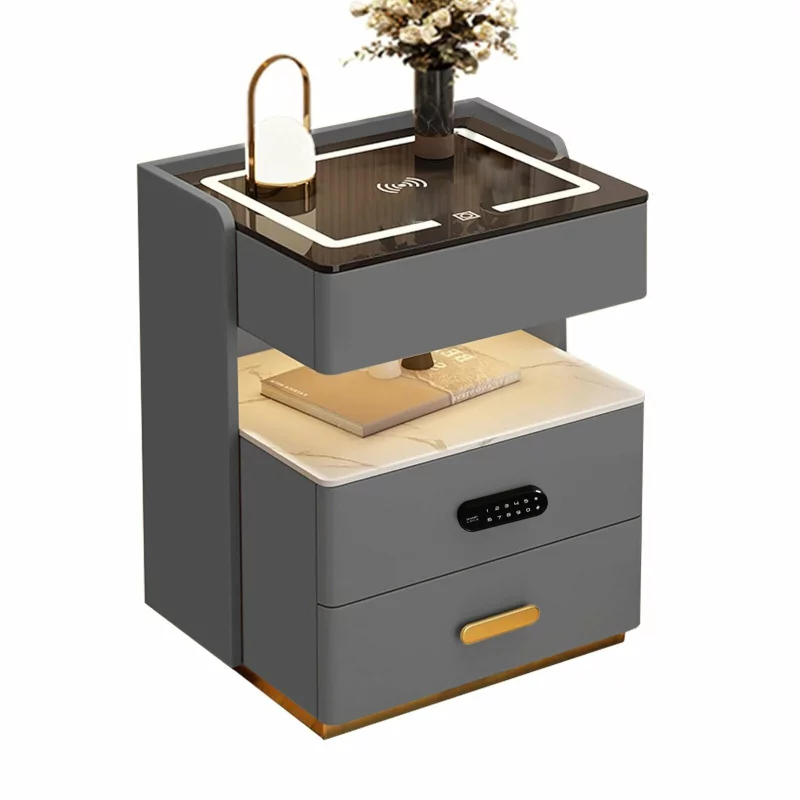 Intelligenter Nachttisch mit Fingerabdruckschloss, 15W Wireless Charging & Bluetooth – Anthrazitgrau, 3 Schubladen