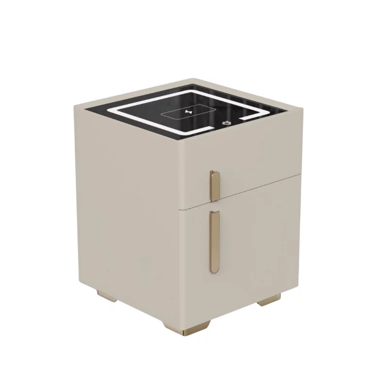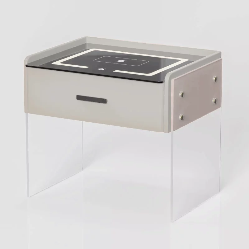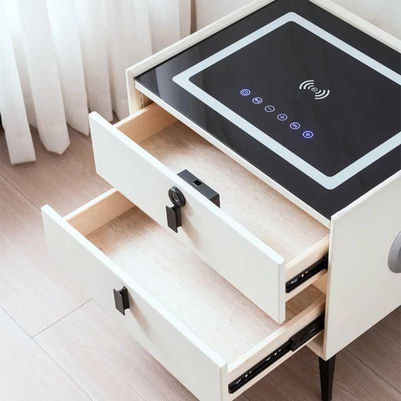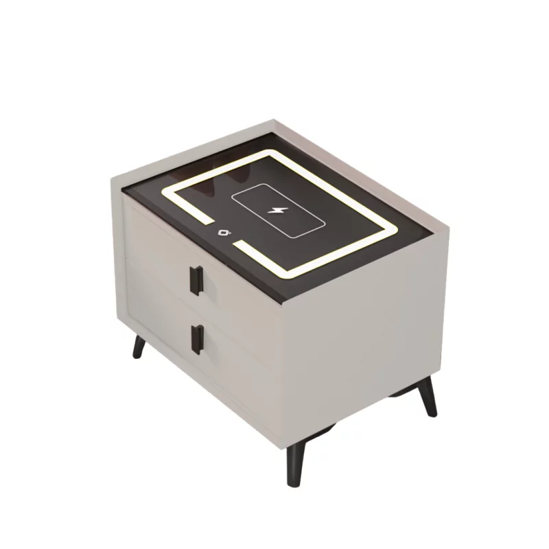 Intelligenter multifunktionaler Nachttisch Smarter Nachttisch Weiß mit kabellosem Laden, Wireless Charging, LED & sicherer Schublade