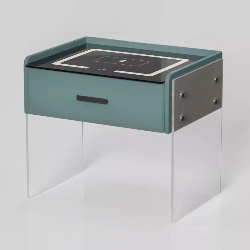 Intelligenter Nachttisch Grün mit Wireless Charging (Qi), LED & 1 Schublade – Kompaktes Glas-Holz-Design