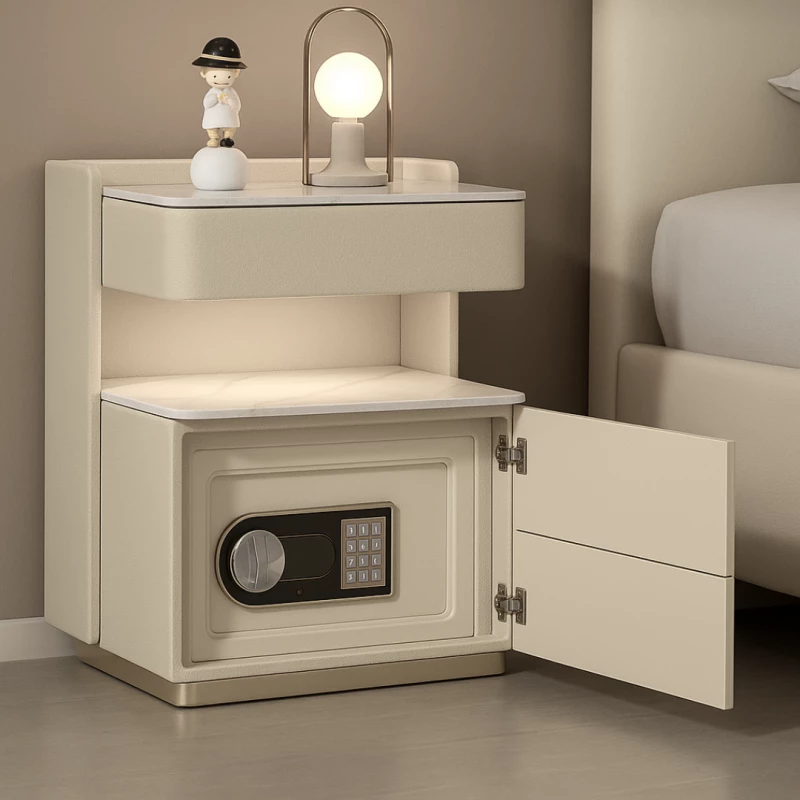 | Funktionen | Kabelloses Aufladen, LED-Beleuchtung, Nachtlichtsensor, Bluetooth-Lautsprecher und biometrische Schlösser; |