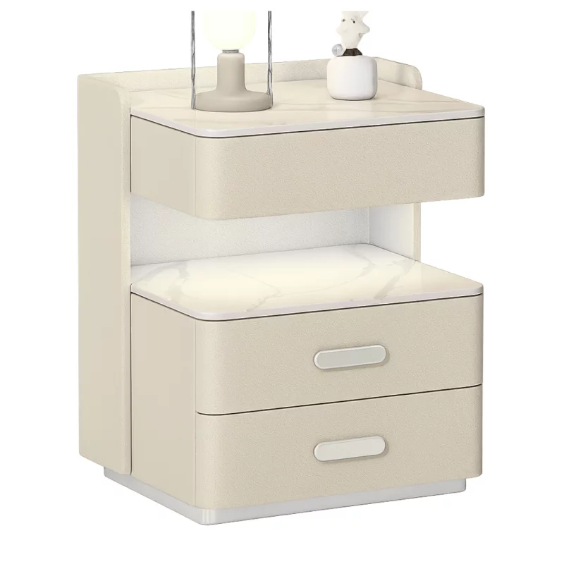 Intelligenter Nachttisch mit Wireless Charging, Bluetooth-Lautsprecher & RGB-LED – Weiß, 3 Schubladen