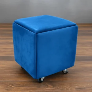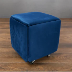 5-in-1 Multifunktionshocker aus blauem Velours – Moderner Sitzhocker mit Stauraum & Rollen (S2301)