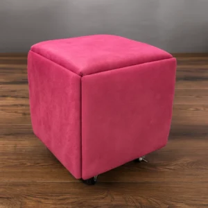 5-in-1 Multifunktionshocker aus Velours Rosa – Moderner Sitzhocker mit Stauraum