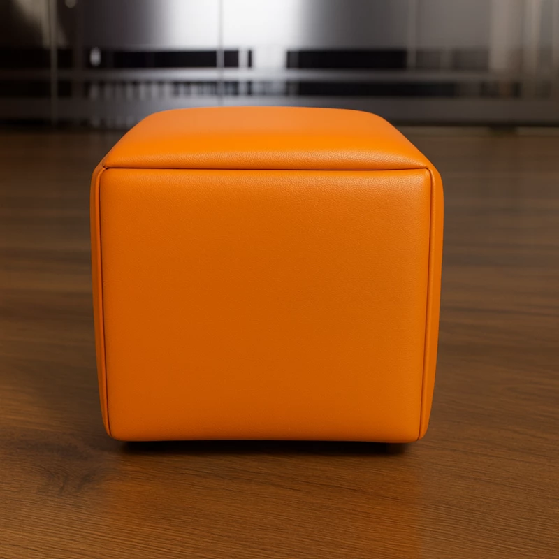 Ob als zusätzliche Sitzgelegenheit, Fußhocker zum Entspannen, Beistelltisch, Dekorationselement oder Stauraumlösung – der S2301 überzeugt durch Flexibilität und intelligente Nutzungsmöglichkeiten. Das minimalistische Würfeldesign fügt sich harmonisch in moderne Wohnkonzepte ein und setzt mit seiner lebendigen orangenen Farbe stilvolle Akzente.