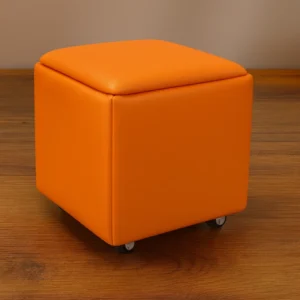 Multifunktionshocker 5-in-1 S2301 – Sitzhocker mit Stauraum, Fußhocker & Beistelltisch aus PU & Latex in Orange