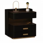 Die Kombination aus gehärtetem Glas, hochwertigem PU-Leder, MDF-Holz und stabilen Metallkomponenten sorgt für ein luxuriöses Erscheinungsbild, hohe Stabilität und langlebige Qualität. Dadurch eignet sich diese Nachtkommode ideal für moderne Wohnkonzepte, Hotelzimmer oder stilvolle Schlafzimmerausstattungen.