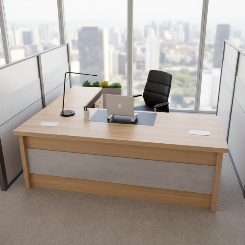 Manager-Schreibtisch 2200 × 900 mm mit Frontpanel & schwebenden Schubladen – 50 mm E1 Melamin – Executive Design