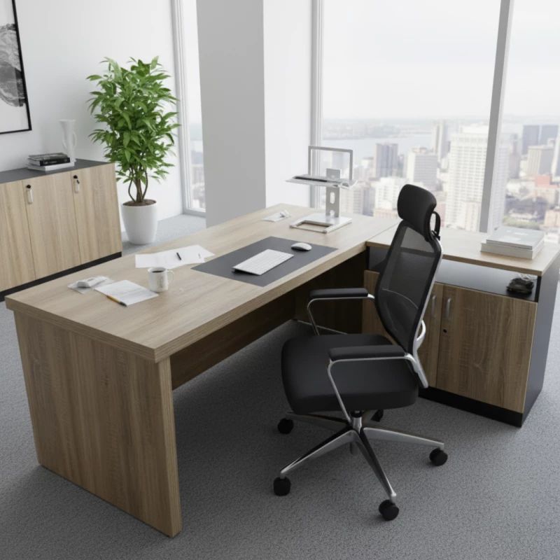 Direktionsschreibtisch 240 cm mit Sideboard – Executive Chefschreibtisch Holz Design mit Stauraum