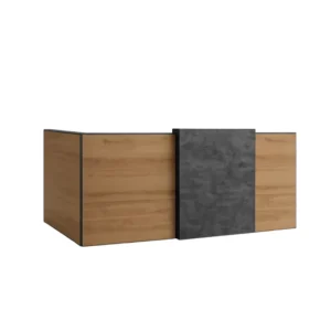 Empfangstheke Ecke 1400×1200 mm mit Rollcontainer & Frontpanel – Stejar hell