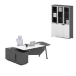 Dieses hochwertige Büromöbelset im modernen Design verwandelt jedes Büro in eine repräsentative und funktionale Arbeitsumgebung. Das Set kombiniert einen großzügigen Eckschreibtisch mit Seitenschrank, einen eleganten Aktenschrank mit Glastüren sowie einen ergonomischen Premium-Bürostuhl – perfekt für Geschäftsführerbüros, Kanzleien oder anspruchsvolle Homeoffice-Lösungen.