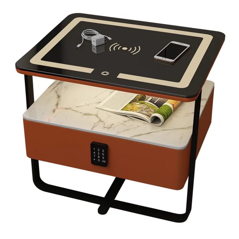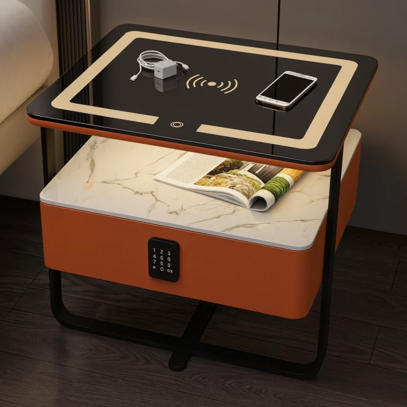 Intelligenter Smarter Nachttisch Orange mit kabellosem Laden Wireless Charging, LED-Beleuchtung & 2 Schubladen