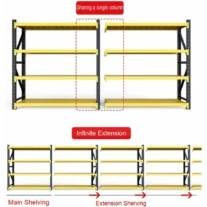 Schwerlastregalsystem 5800×600×2000 mm – 12 Ebenen – Schwerlastregal 2400 kg – verzinkt, stabil & werkzeuglos montierbar (Gelb)