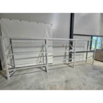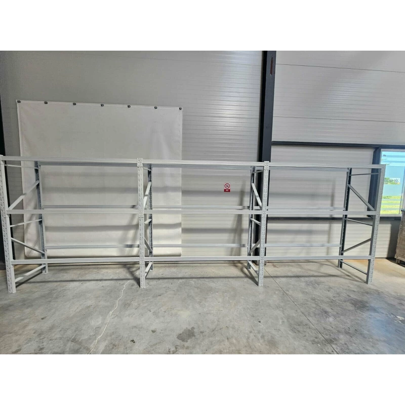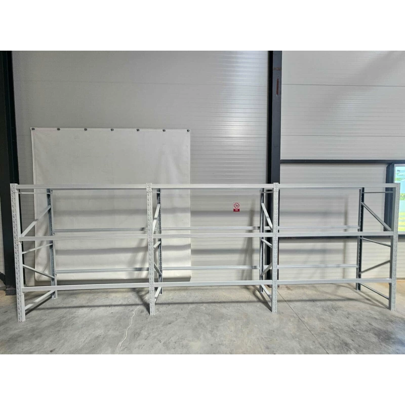 Dank seiner robusten Stahlkonstruktion und der weiß pulverbeschichteten Oberfläche bietet das Schwerlastregal höchste Stabilität, Tragkraft und Korrosionsbeständigkeit – ideal für den täglichen Einsatz im gewerblichen Bereich.
