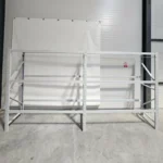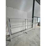 Die robuste Stahlkonstruktion sorgt für maximale Stabilität und eine lange Lebensdauer, während die weiß lackierte, korrosionsbeständige Oberfläche das Regal pflegeleicht und widerstandsfähig macht.