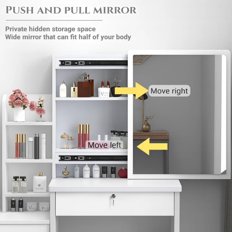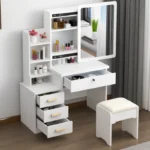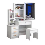 Dieser Schminktisch mit beleuchtetem LED-Spiegel und passendem Hocker vereint modernes Design mit durchdachter Funktionalität. Ob im Schlafzimmer, Ankleidezimmer oder Jugendzimmer – dieser Frisiertisch schafft eine stilvolle und optimal organisierte Beauty-Zone in Ihrem Zuhause.