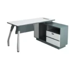 Schreibtisch 1200×1200 mm mit 25 mm Melaminplatte E1, Metallgestell und festem Seitenschrank