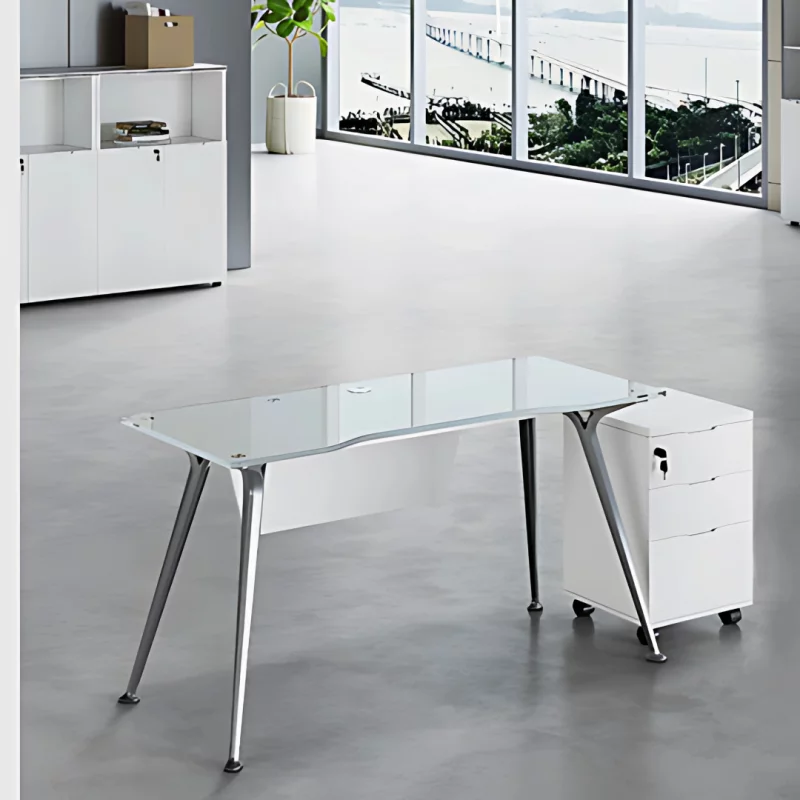 Stil trifft Funktion – Moderner Schreibtisch mit Glasplatte & mobilem Seitenschrank