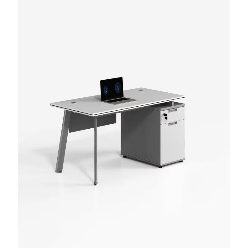 Moderner weißer Glas-Schreibtisch mit festem Seitenschrank – kratzfest, pflegeleicht & elegant – 1200×600×750 mm