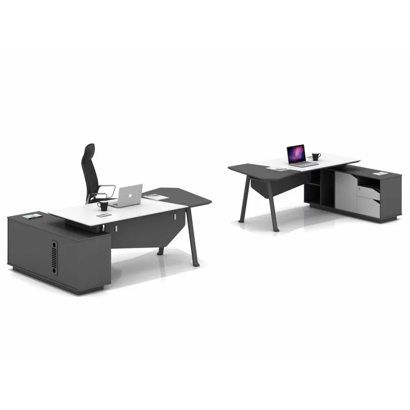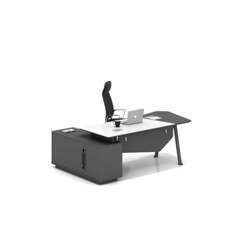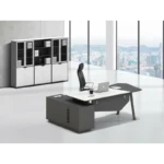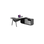 Der integrierte Seitenschrank mit mehreren Schubladen ergänzt den Tisch perfekt – ideal zur geordneten Aufbewahrung von Dokumenten, Büromaterial und persönlichen Gegenständen.