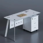 Dieser Design-Schreibtisch mit weißer Glasplatte wurde speziell für moderne Arbeitsumgebungen entwickelt, in denen Stil und Funktionalität gleichermaßen gefragt sind.