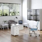 Moderner Glas-Schreibtisch mit mobilem Seitenschrank – Funktion trifft auf Design
