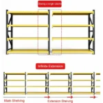 Dieses professionelle Metallregal bietet eine zuverlässige und platzsparende Lösung für die Lagerung von Waren in Lagerhallen, Werkstätten, Garagen, Verkaufsräumen und industriellen Bereichen.