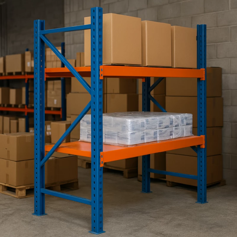 Robustes Schwerlastregal mit 2 Ebenen und 4 Fachböden