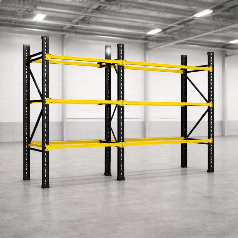 Die Struktur besteht aus hochwertigem Stahl mit elektrostatischer Pulverbeschichtung, die einen zusätzlichen Schutz gegen Korrosion, Kratzer und mechanische Belastung bietet. Dadurch eignet sich das Regal besonders für intensive Nutzung in industriellen oder gewerblichen Umgebungen.