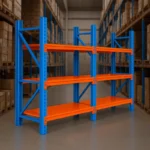 Schwerlastregal aus Stahl – 1500 x 500 x 2000 mm – 4 Ebenen – 400 kg Tragkraft – verzinkt & blau pulverbeschichtet