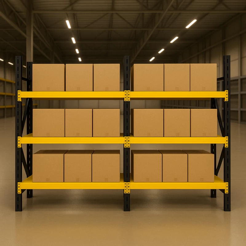 Schwerlastregal aus Stahl – 1085 x 600 x 2000 mm – 3 Ebenen – 600 kg Tragkraft – verzinkt & gelb pulverbeschichtet
