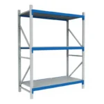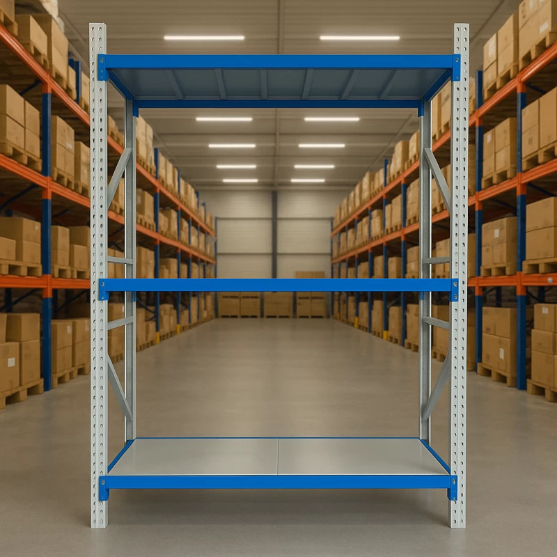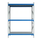 Schwerlastregal aus Stahl – 1500 x 500 x 2000 mm – 4 Ebenen – 400 kg Tragkraft – verzinkt & blau pulverbeschichtet