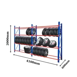 Reifenregal Schwerlastregal – 3900×600×2000 mm – 4 Ebenen – 2400 kg Gesamttragkraft – Blau – Metallregal für Werkstatt, Lager & Garage
