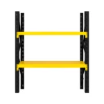 Das Lagerregal besteht aus einer stabilen Stahlkonstruktion mit 2 Ebenen (2 Regalböden), die für eine sichere und übersichtliche Lagerung konzipiert sind.