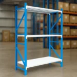 Schwerlastregal aus Stahl – 1500 x 500 x 2000 mm – 4 Ebenen – 400 kg Tragkraft – verzinkt & blau pulverbeschichtet